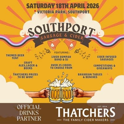 Back to What's OnShareWhat's Onvia SkiddleSausage & Cider Festival10 April 2026Southport's Oktoberfest Presents Sausage & Cider Festival coming to Victoria Park on Saturday 18th April 2026Read full article at SkiddleI'm interestedComments No comments yet. Be the first to share your thoughts!